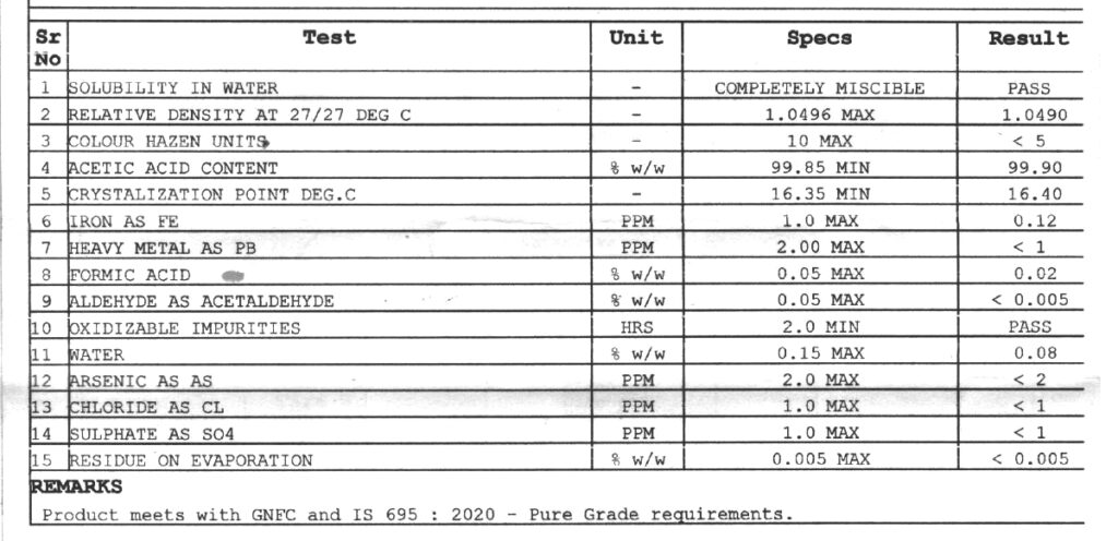 Product meets with GNFC and IS 695:2020 - Pure Grade Requirements