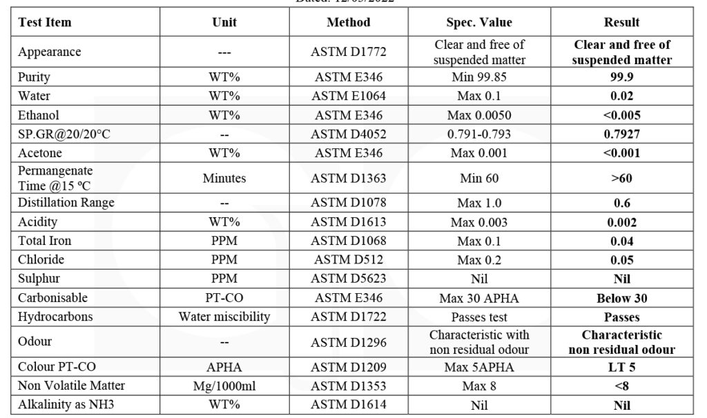 Product meets with GNFC and IS 695:2020 - Pure Grade Requirements