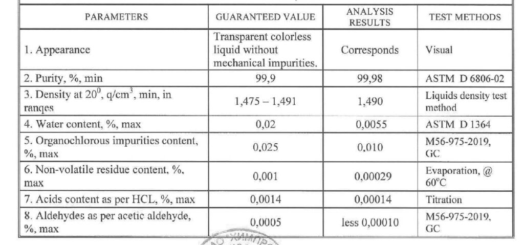 Product meets with GNFC and IS 695:2020 - Pure Grade Requirements